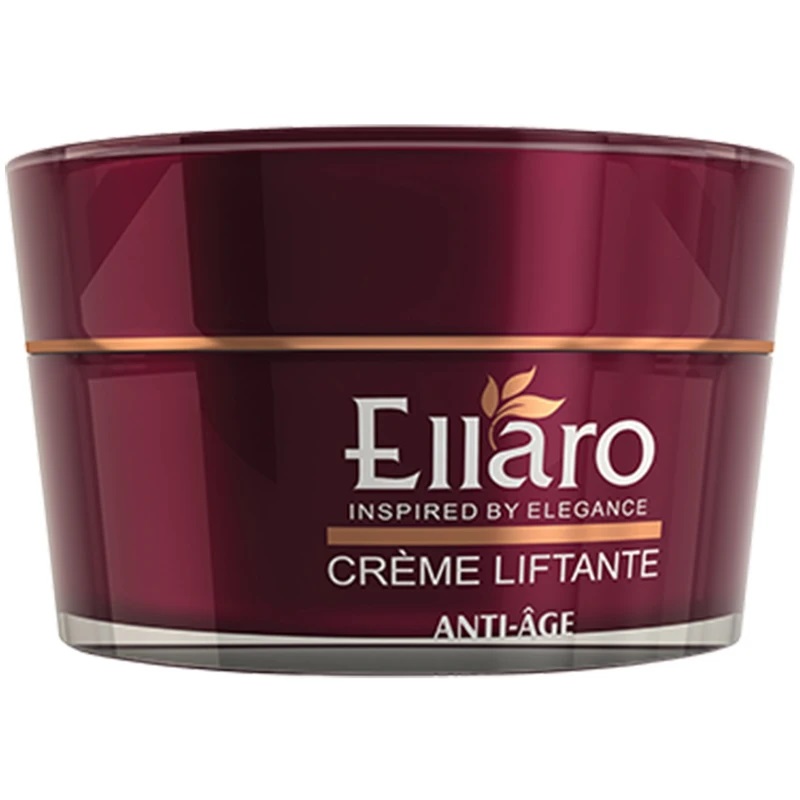 کرم ضد چروک و لیفتینگ قوی برند «الارو» (Ellaro) مدل «لیفتنت آنتی ایج» (Liftante Anti Age) 50 میلی‌لیتر حجم دارد. کرم آنتی ایج الارو چین و چروک‌های عمیق پوست صورت را کاهش می‌دهد و از چروک شدن و پیری پوست پیشگیری می‌کند؛ مانع از افتادگی پوست می‌شود و اثر سفت کنندگی آن بر روی پوست، به‌سرعت قابل مشاهده است. کرم لیفتنت آنتی ایج الارو نه‌تنها رطوبت طبیعی پوست را حفظ می‌کند بلکه تقویت کننده‌ی پوست هم هست. لیفتنت آنتی ایج برای پوست‌های نرمال تا خشک مناسب است. استفاده از این کرم برای اشخاص زیر 35 سال توصیه می‌شود چرا که از ایجاد چروک پیشگیری می‌کند و علائم پیری بر روی پوست را کنترل می‌کند. زمان استفاده از کرم الارو که حافظ جوانی پوست شما هم هست، روز و شب است. کرم را بر روی پوست تمیز صورت و گردنتان بمالید و به‌آرامی ماساژ دهید تا جذب پوستتان شود و تاثیر خود را بگذارد. کرم ایج ریکاوری الارو هم از شل شدگی و افتادگی پوست جلوگیری به عمل می‌آورد و خاصیت نرم کنندگی و تقویت کنندگی هم دارد. نوع محفظه‌ی کرم الارو از یک کاسه‌ی شیشه‌ای و زرشکی رنگ ساخته شده است. با استفاده از کرم جوانی الارو به‌راحتی می‌توانید نه‌تنها از رسیدن پیری جلوگیری کنید بلکه پوست چروک و پیر شده را هم تا حدی درمان کنید.