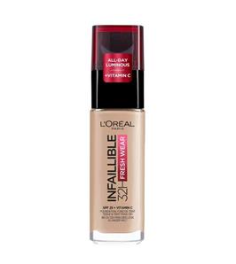 کرم پودر Infallible لورآل، با پوشش و ماندگاری 32 ساعته، رنگ پوست را یکنواخت می کند. این کرم پودر دارای SPF25 و ویتامین C است که از پوست در برابر اثرات مخرب نور خورشید محافظت می کند. کرم پودر لورآل ضد حساسیت است و رطوبت و تعریق در پوشش آن تغییری ایجاد نمیکند.