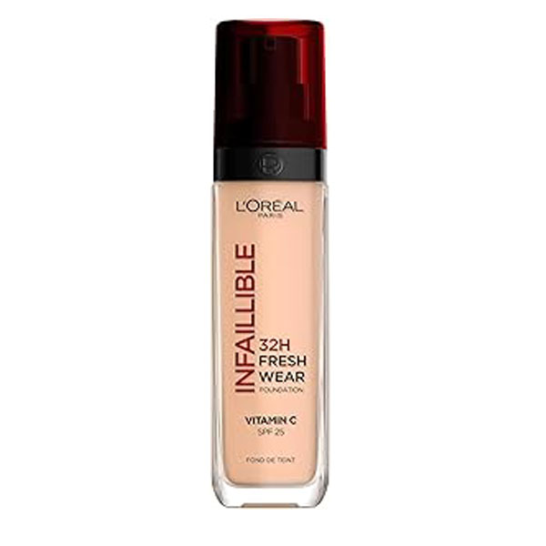 کرم پودر Infallible لورآل، با پوشش و ماندگاری 32 ساعته، رنگ پوست را یکنواخت می کند. این کرم پودر دارای SPF25 و ویتامین C است که از پوست در برابر اثرات مخرب نور خورشید محافظت می کند. کرم پودر لورآل ضد حساسیت است و رطوبت و تعریق در پوشش آن تغییری ایجاد نمیکند.